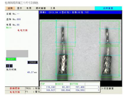 【檢測(cè)要求】用松下圖像處理系統(tǒng)檢測(cè)線纜的尺寸及顏色。